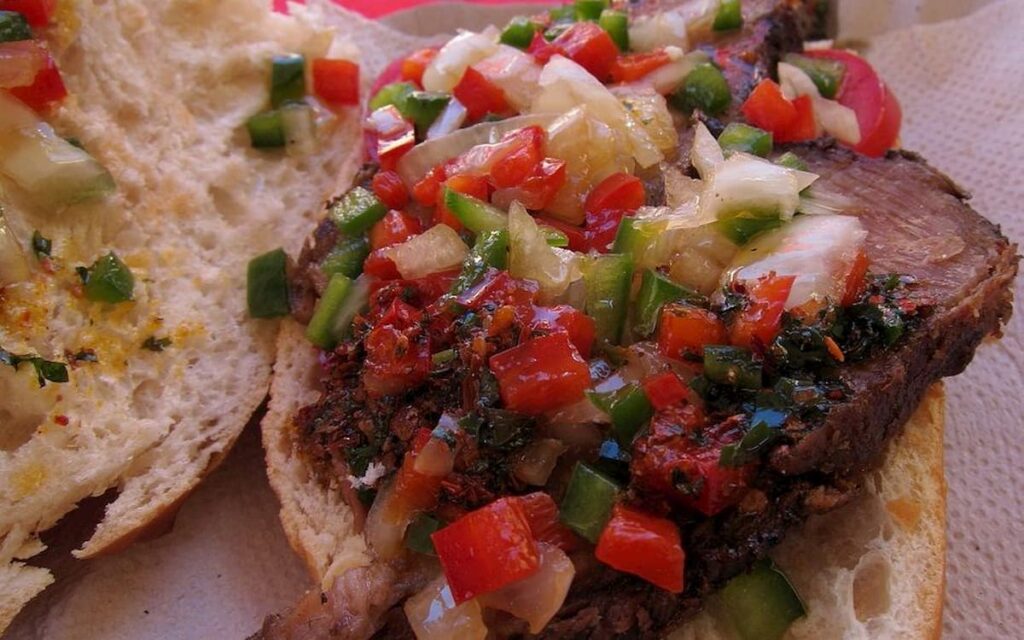 La salsa criolla. Lo más simple y maravilloso que podrás comer en Argentina. Es una mezcla de aceite de girasol, trozos de tomate, pimiento verde, rojo, cebolla y ajo. Y todo junto con el sabor maravilloso que tienen aquí las verduras forman algo increíble para mezclar con la carne.